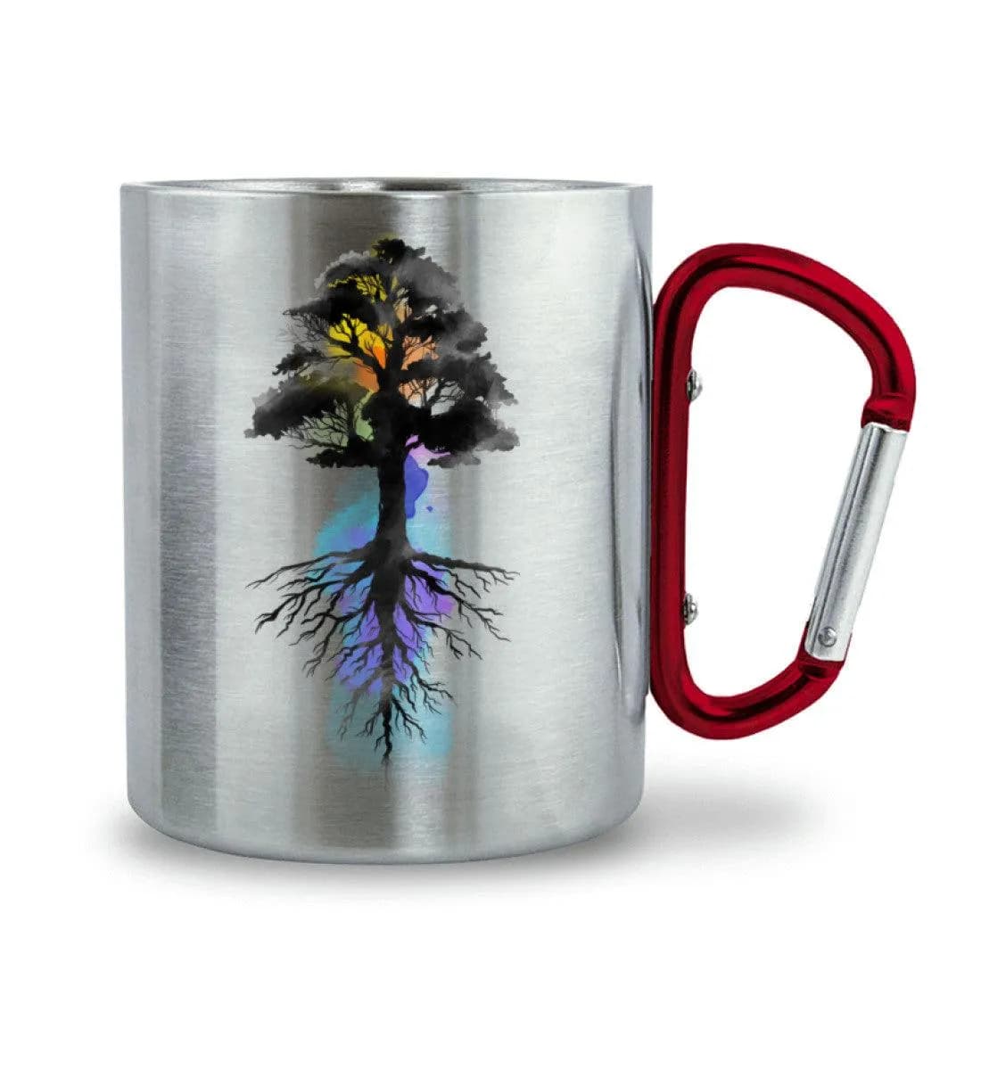 Watercolor Tree - Edelstahltasse mit Karabinergriff